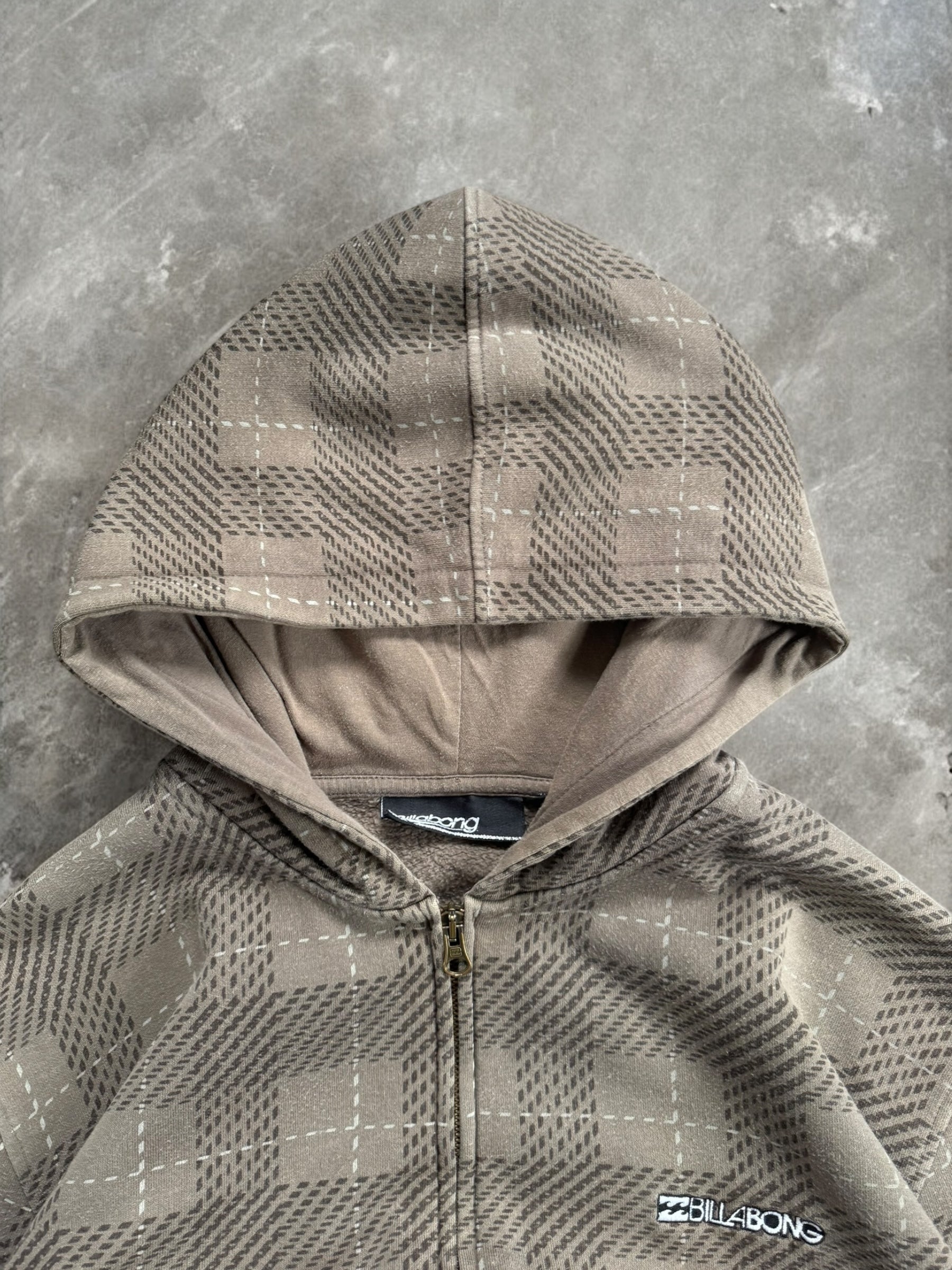 Vintage 2000's brown and beige/cream Billabong tartan / plaid zip up hoodie (XL)