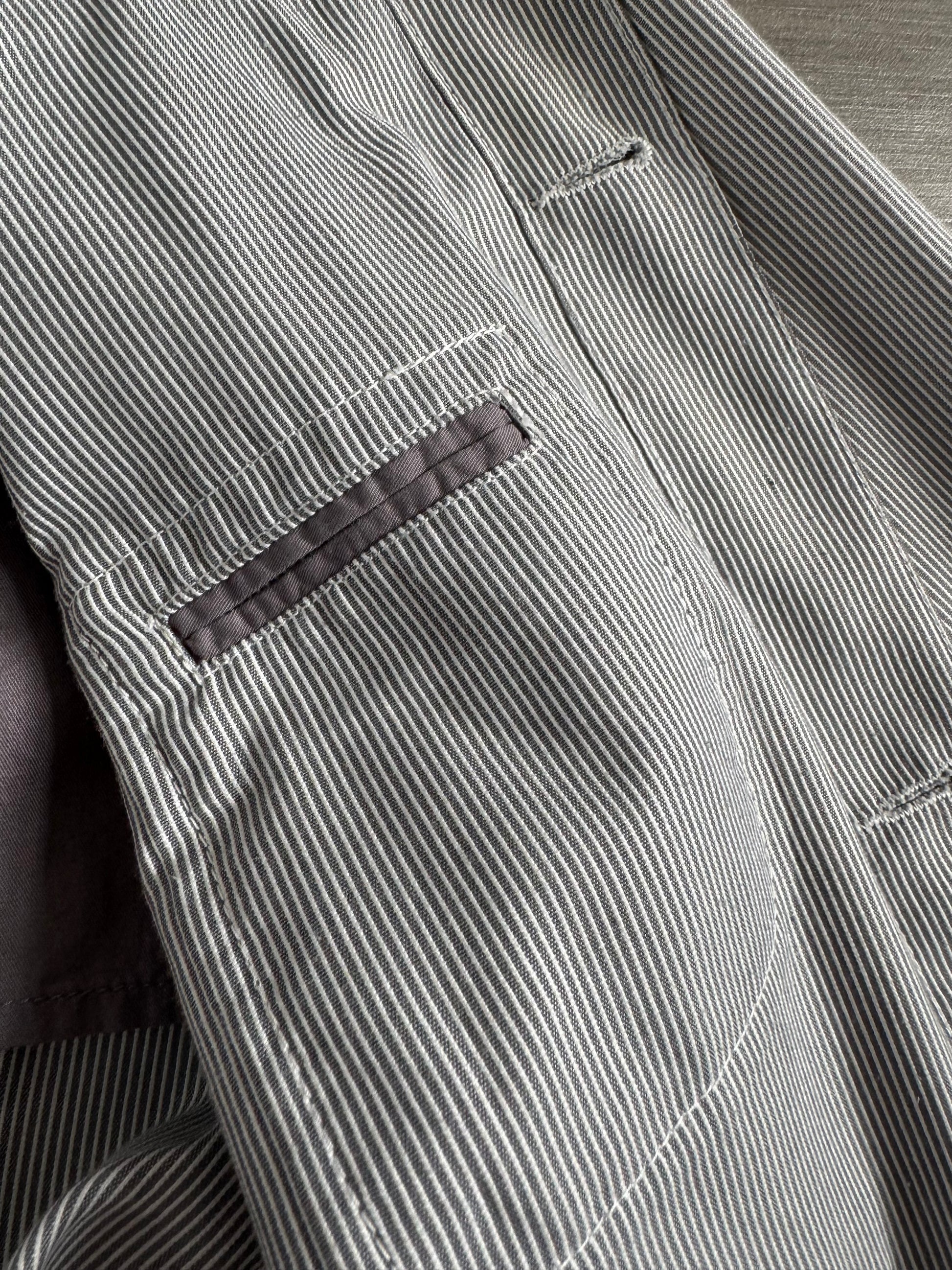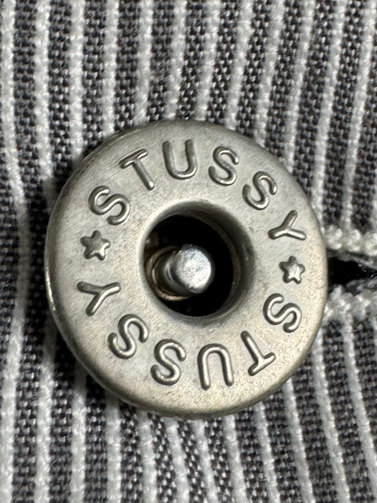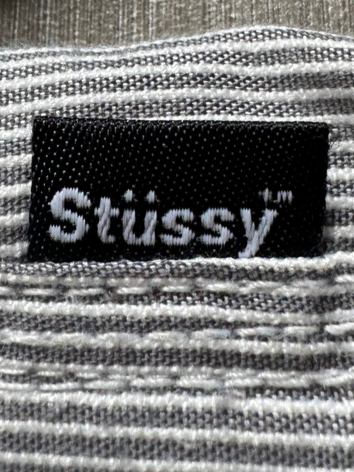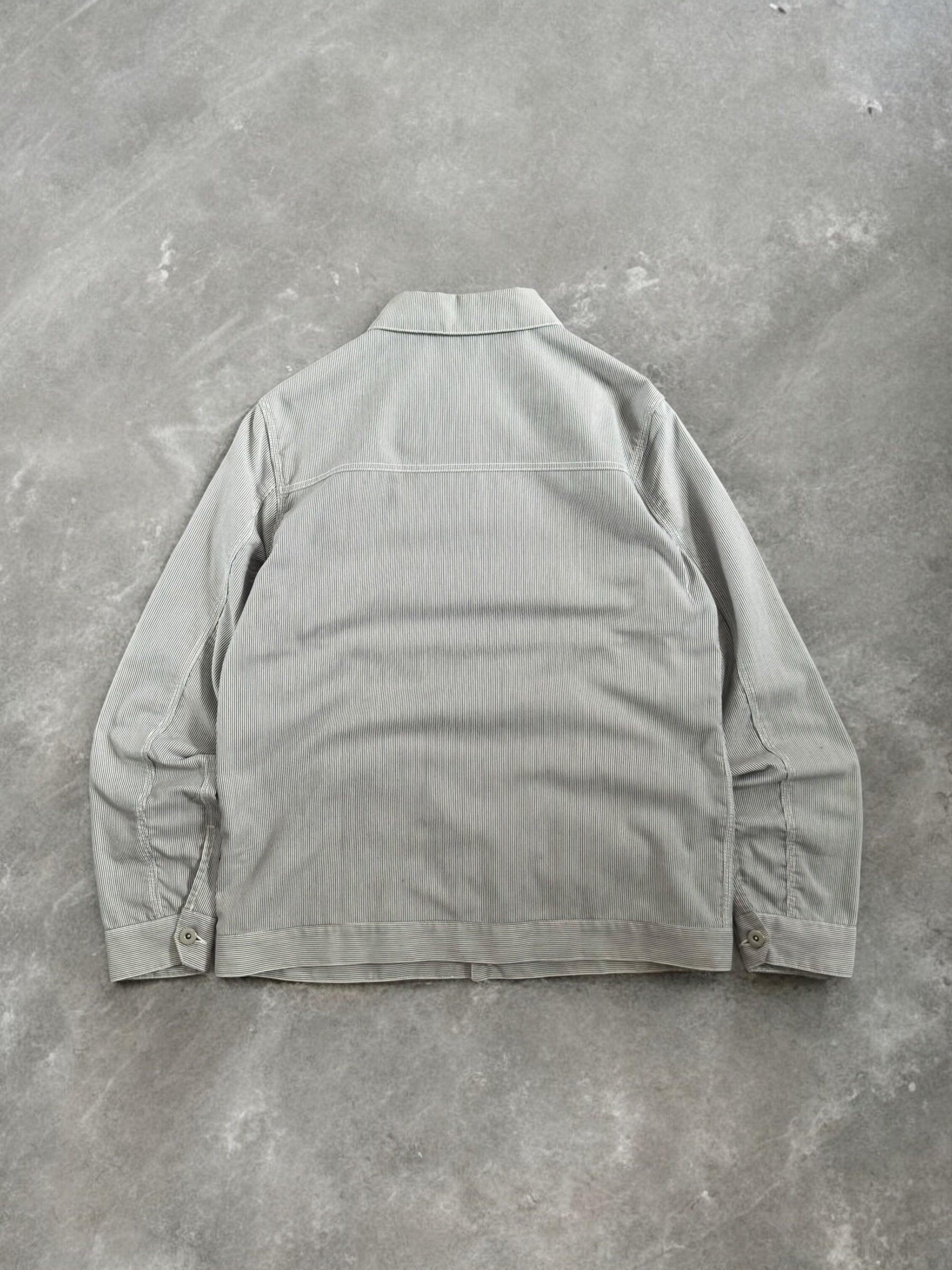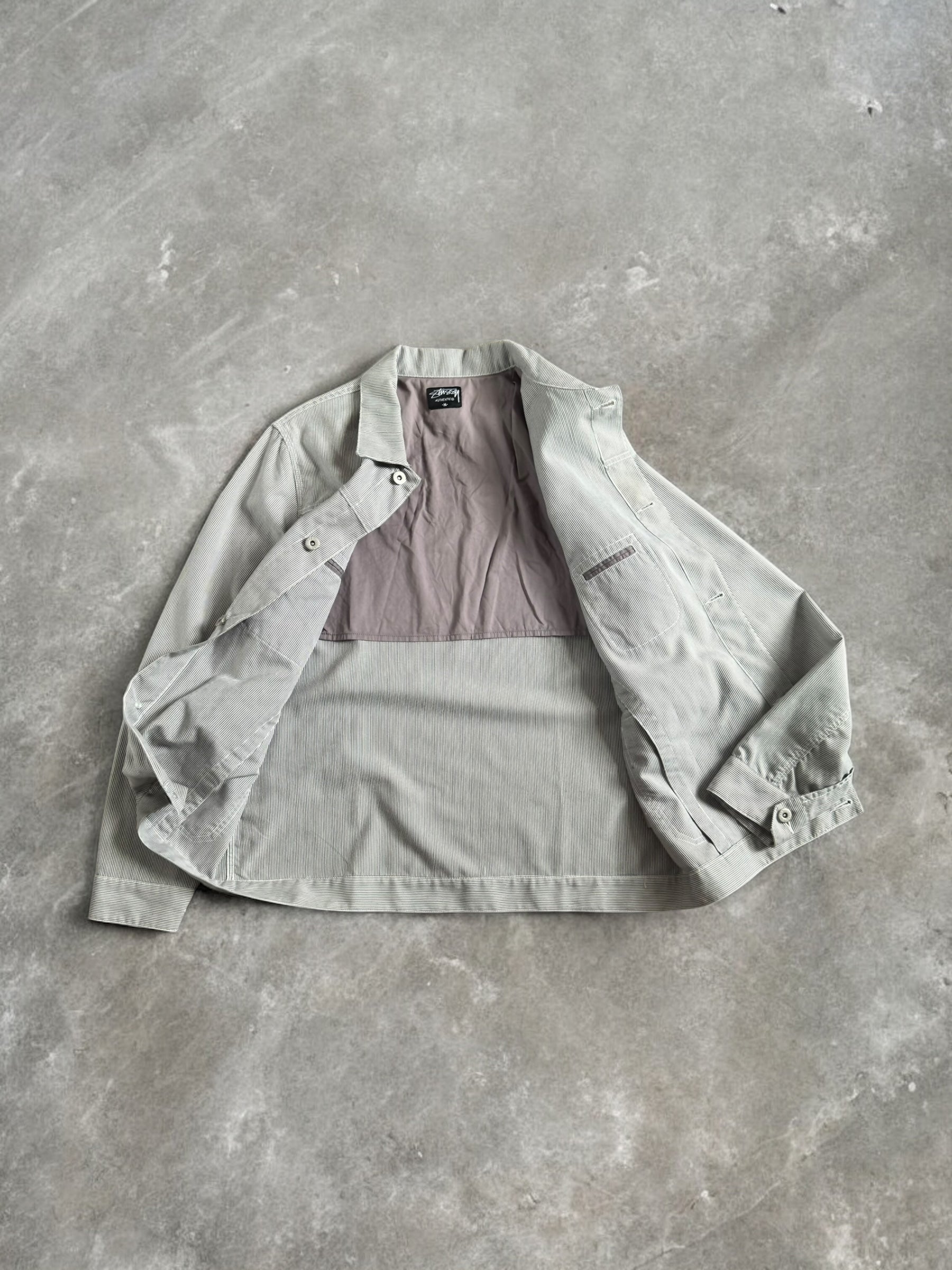 Vintage 2000's grey and white striped Stussy collared chore jacket (M)