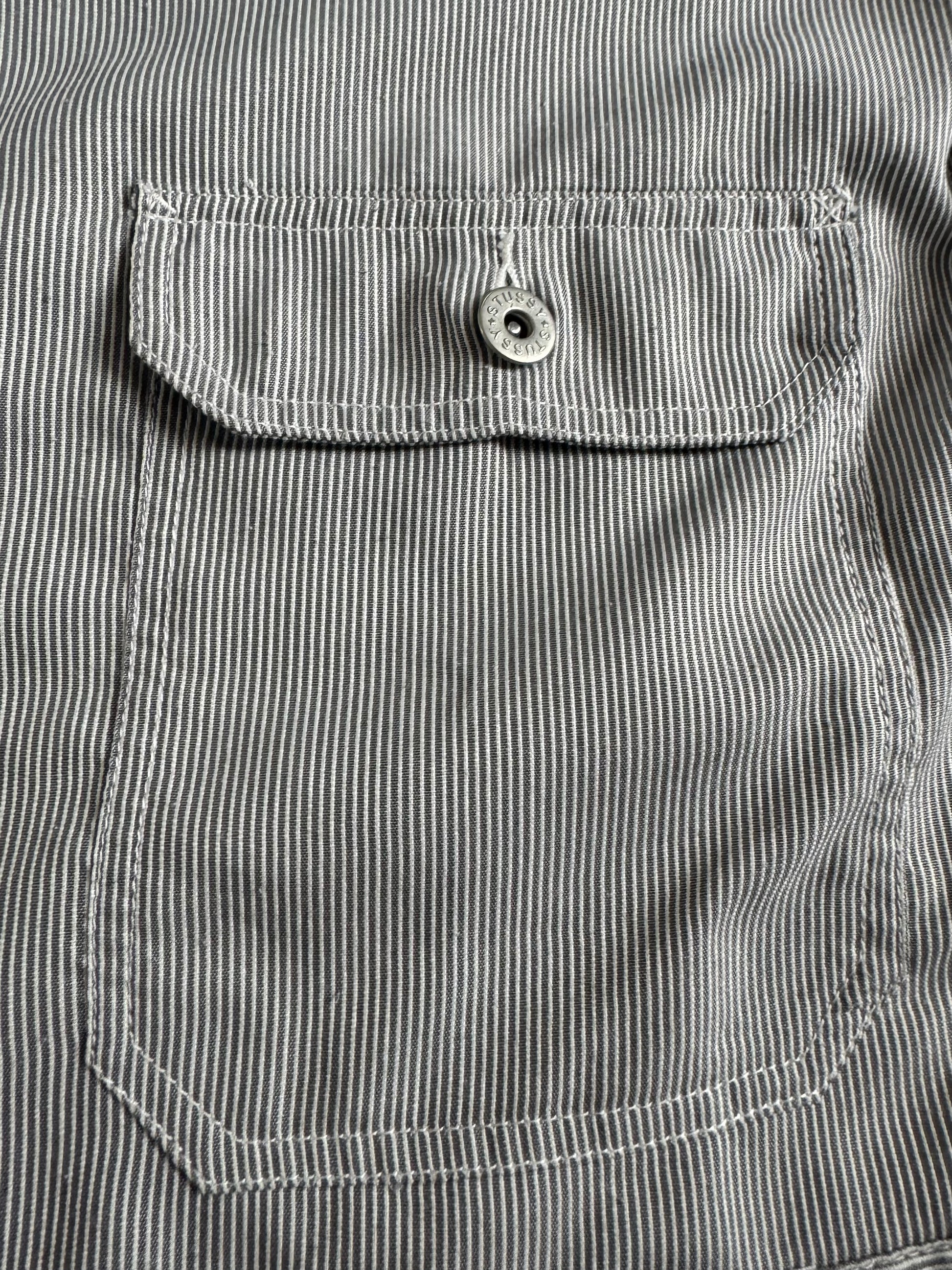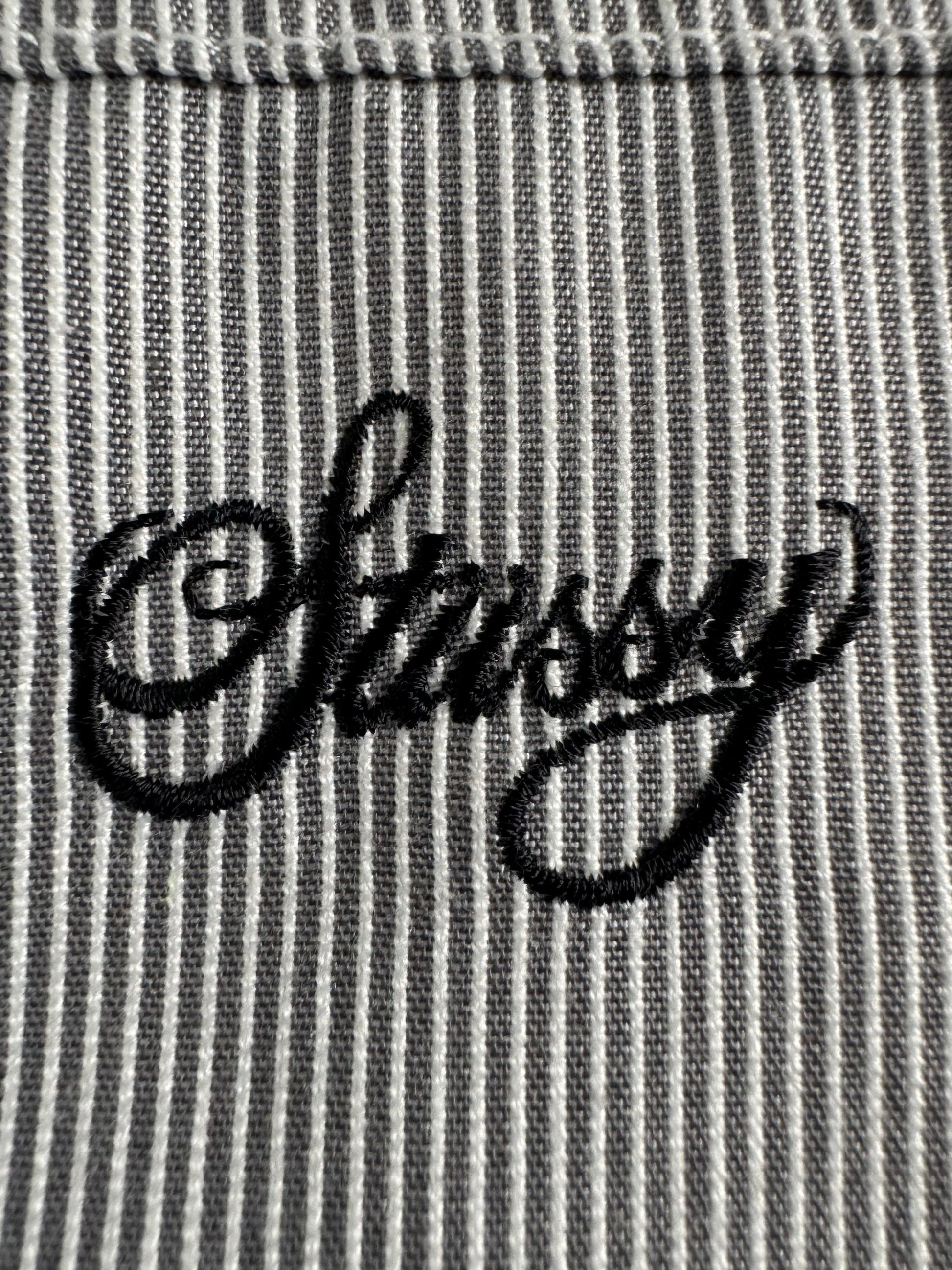 Featuring high quality cut and sewn construction, embroidered stussy logo, double pockets, adjustable button cuff closure, metal embossed buttons and embedded pin stripe fabric giving a real classic French style design