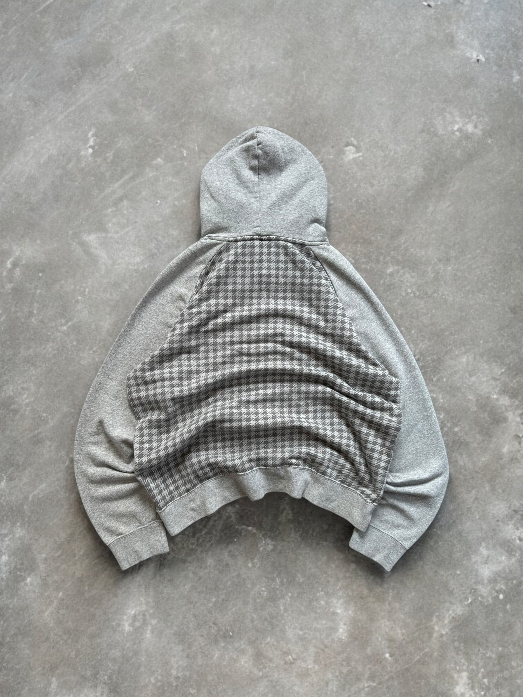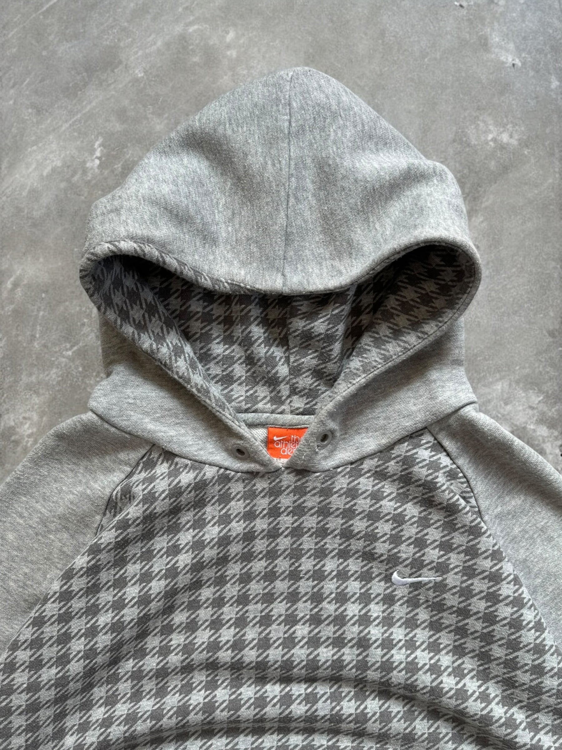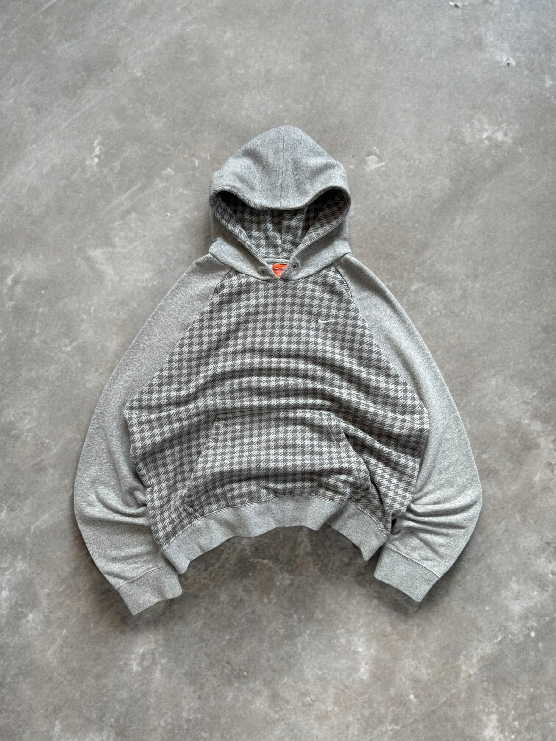 Vintage 2000's grey Nike embroidered swoosh logo tartan / plaid hoodie (L)