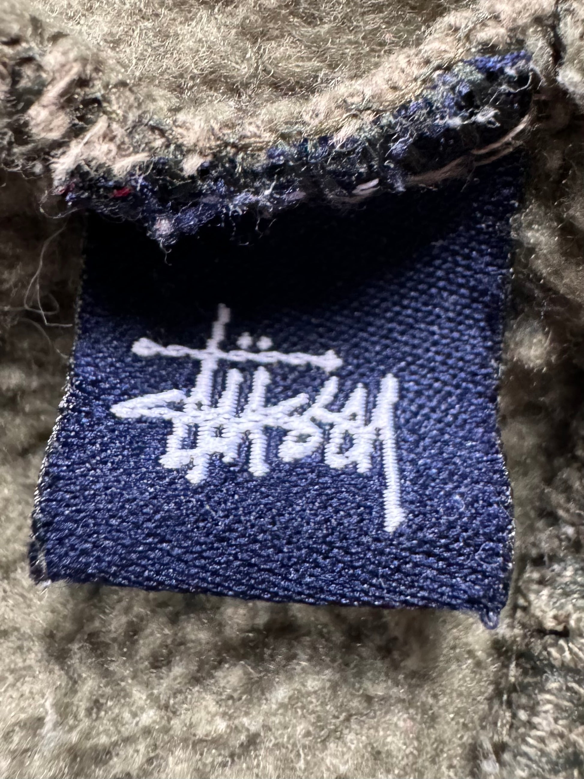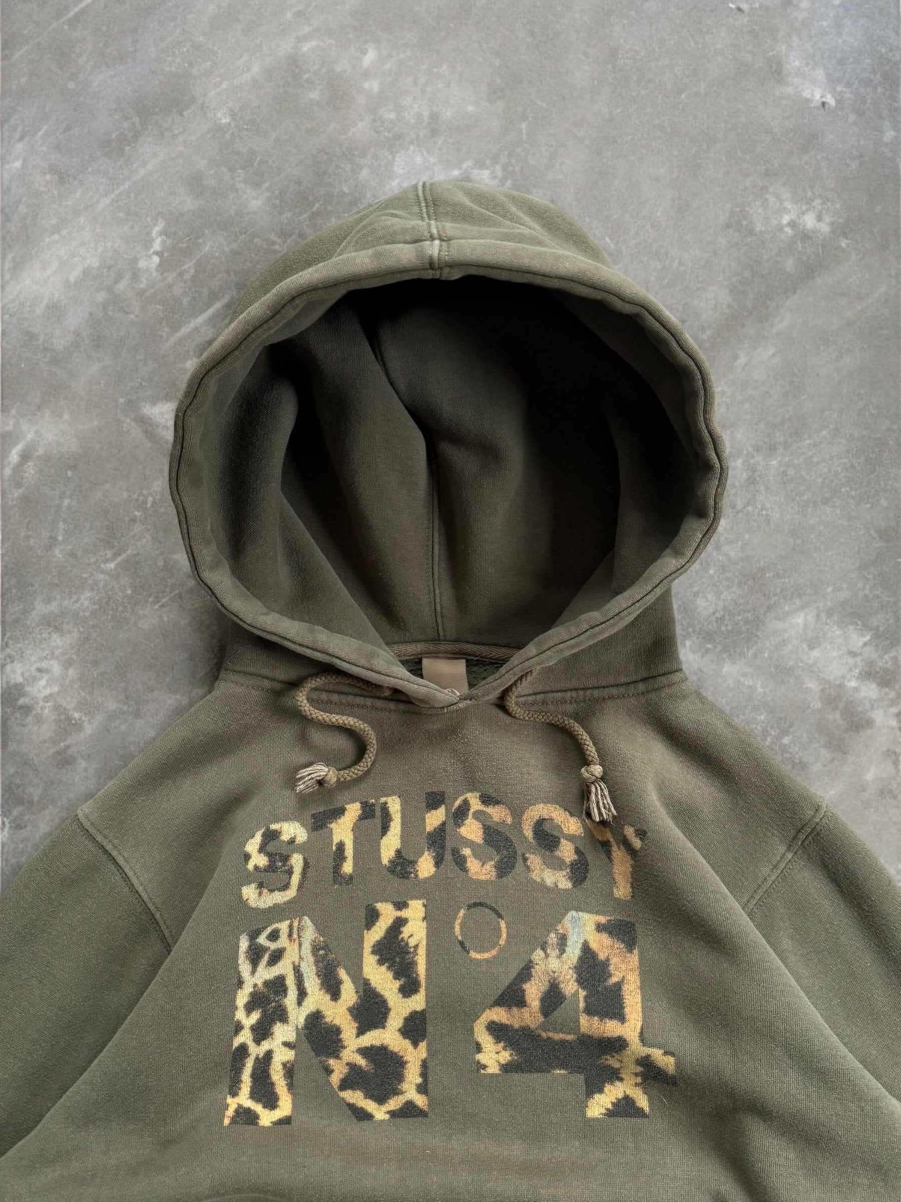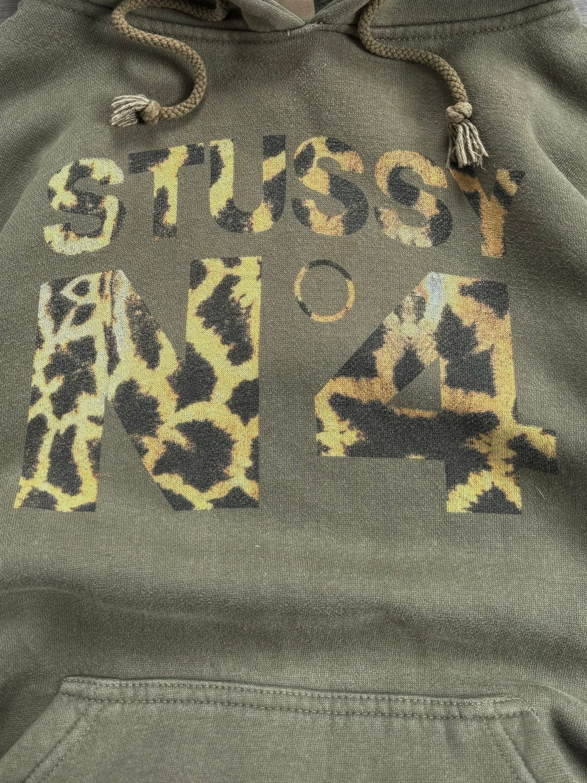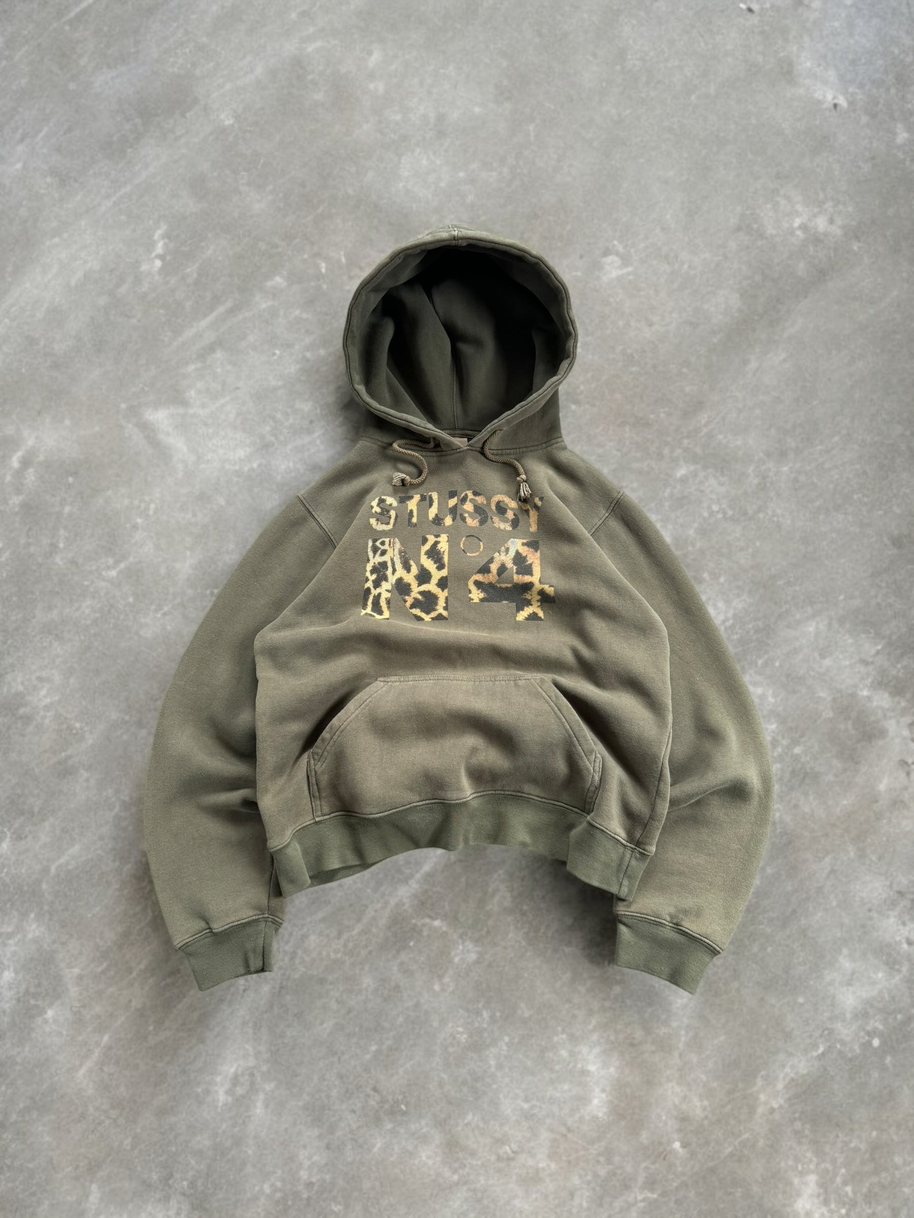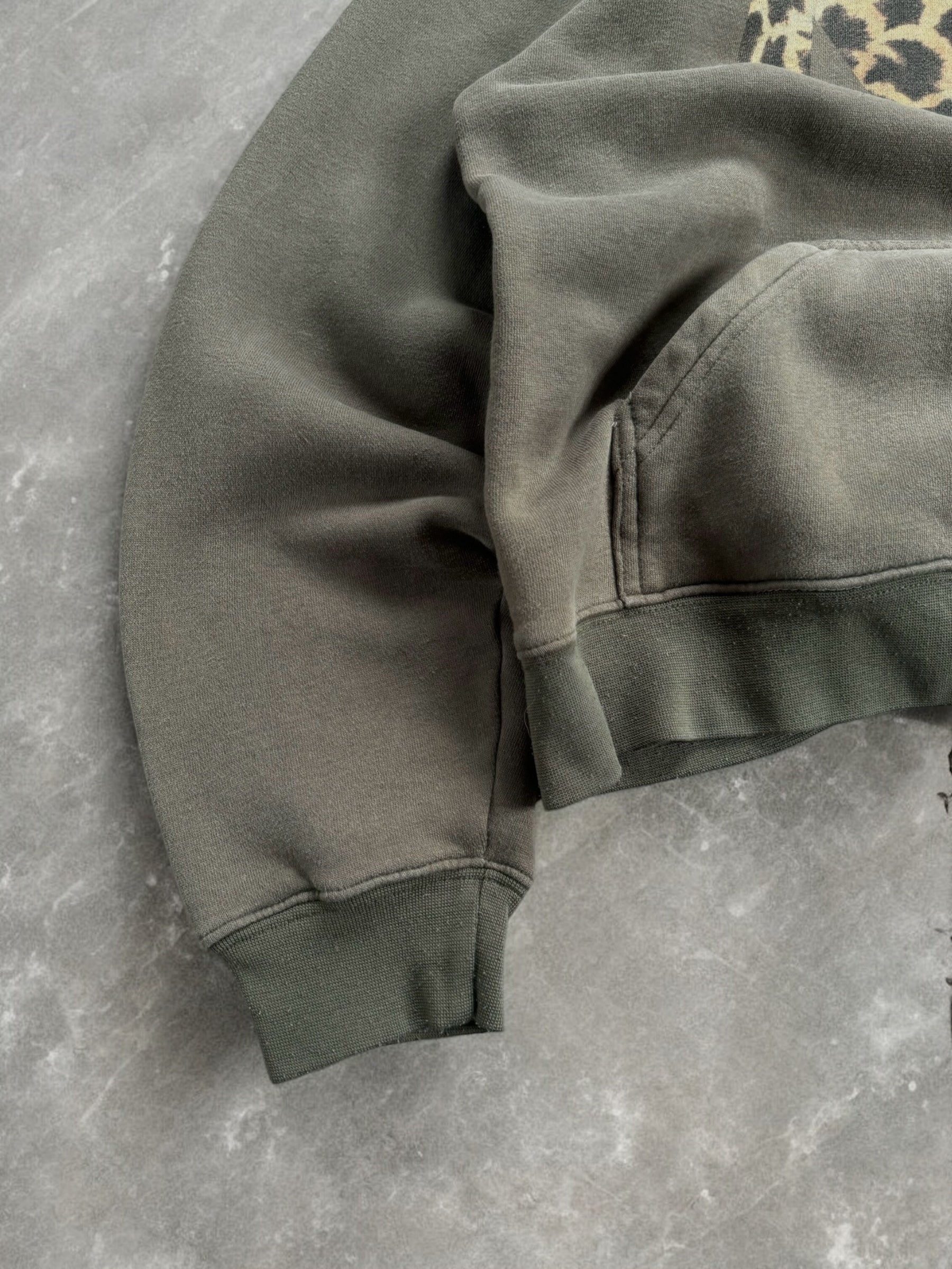 Vintage 2000's khaki green Stussy women’s leopard print hoodie (M)