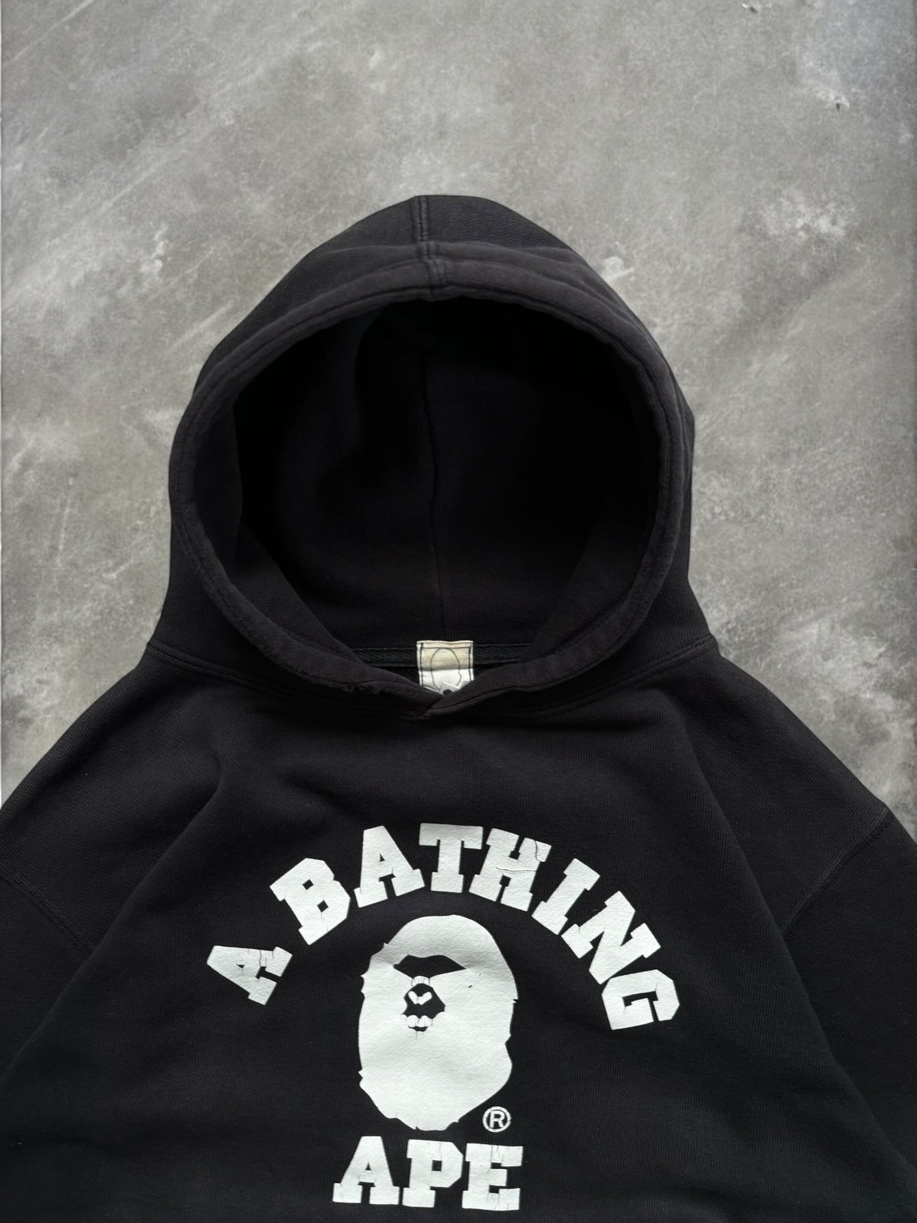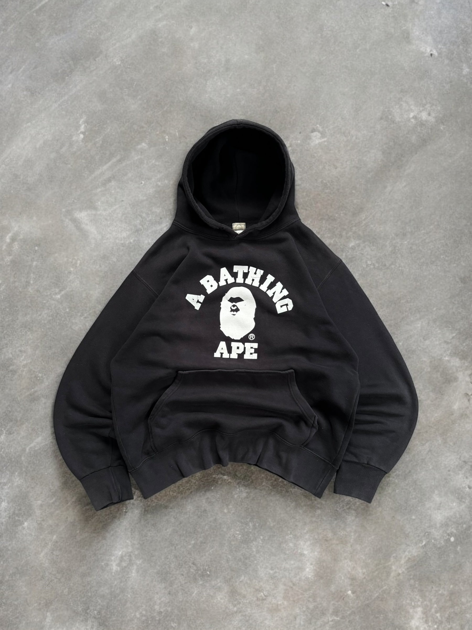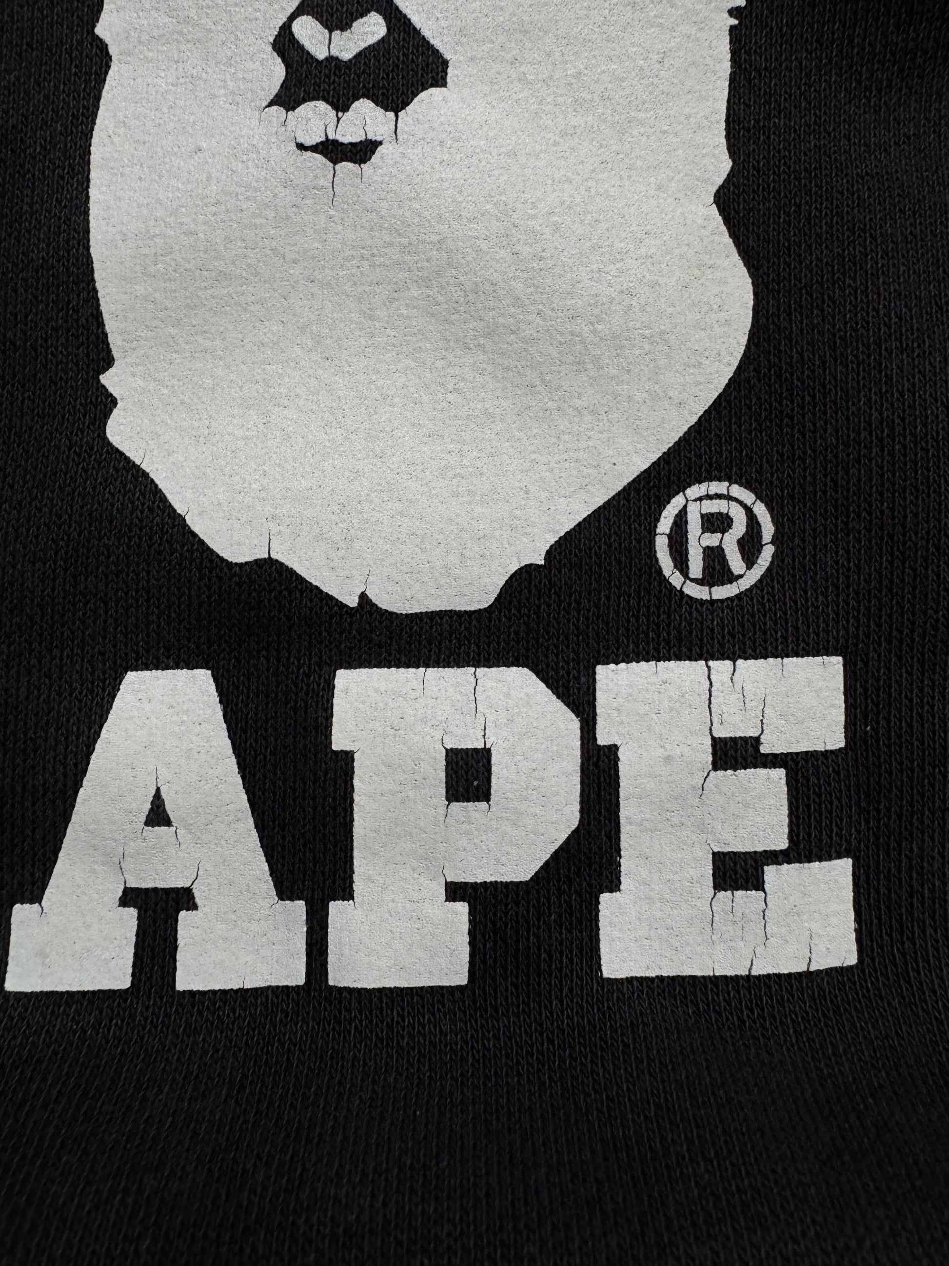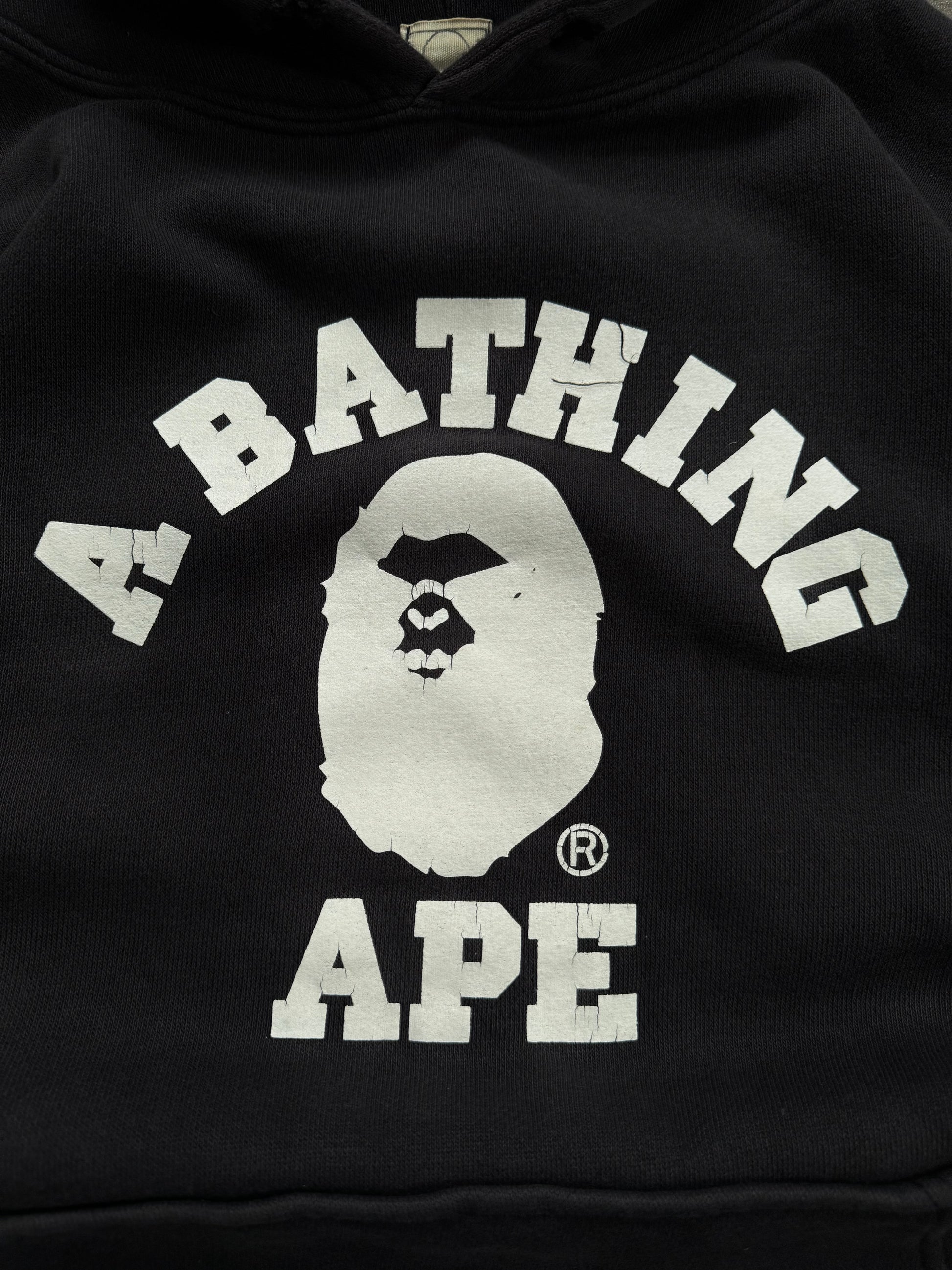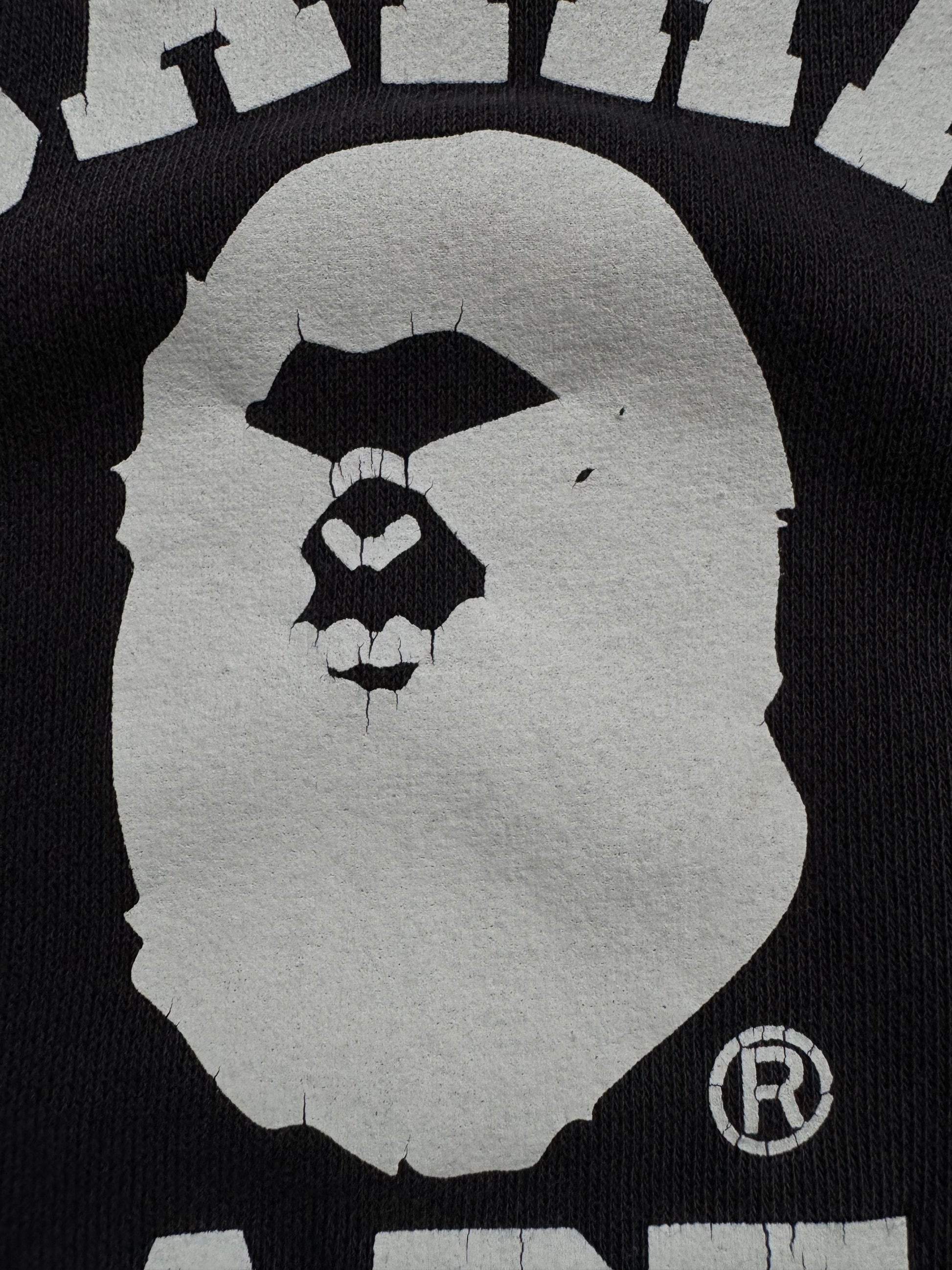 Vintage 90's faded black and white Bape graphic hoodie (L)
