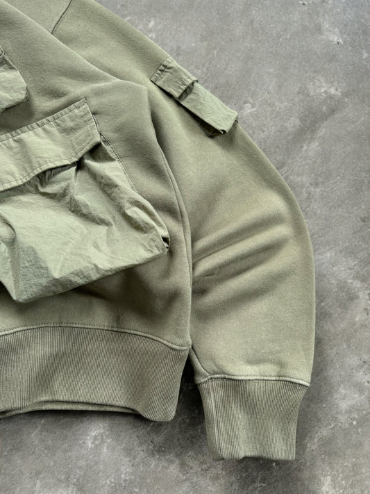 Vintage sage / khaki green Stussy technical cargo hoodie (M)